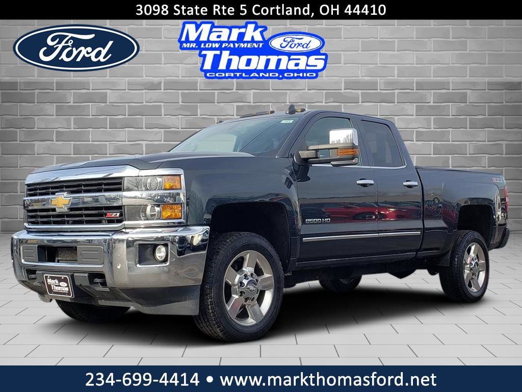 Mark Thomas Ford is proud to offer this hard-working 2017 Chevrolet Silverado 2500HD in Graphite Metallic. This 2017 Chevrolet Silverado 2500HD has passed our comprehensive inspection and comes with the following features; LTZ Plus Package (Heated Leather Wrapped Steering Wheel and Power-Adjustable Pedals), Off-Road Z71 Package (Hill Descent Control), Preferred Equipment Group 1LZ (110-Volt AC Power Outlet, 4.2" Diagonal Color Display Driver Info Center, 6-Speaker Audio System, Auto-Dimming Inside Rear-View Mirror, Chrome Bodyside Moldings, Chrome Door Handles, Chrome Mirror Caps, Color-Keyed Carpeting Floor Covering, Deep-Tinted Glass, Driver & Front Passenger Vanity Mirror Visors, Dual-Zone Automatic Climate Control, Electric Rear-Window Defogger, Electronic Shift Transfer Case, EZ-Lift & Lower Tailgate, Front Halogen Fog Lamps, HD Radio, Heated Power-Adjustable Outside Mirrors, Integrated Trailer Brake Controller, Leather-Wrapped Steering Wheel, Manual Tilt-Wheel/Telescoping Steering Column, OnStar 3 Month Guidance Plan, OnStar 4G LTE Wi-Fi Hotspot, Power Sliding Rear Window w/Defogger, Power Windows w/Driver Express Up & Down, Rear 60/40 Folding Bench Seat (Folds Up), Rear Vision Camera, Rear Wheelhouse Liners, Remote Keyless Entry, Remote Locking Tailgate, Remote Vehicle Starter System, Single Slot CD/MP3 Player, SiriusXM Satellite Radio, Steering Wheel Audio Controls, Unauthorized Entry Theft-Deterrent System, and Universal Home Remote), Snow Plow Prep Package (220 Amps Alternator and Provision for Cab Roof-Mounted Lamp/Beacon), Standard Suspension Package, Trailering Equipment, Vortec Plus Package (Chrome Power-Adjustable Heated Trailering Mirrors, Floor Mounted Console, Heated Driver & Front Passenger Seating, Heated Front Full Feature Bucket Seats, Wheels: 20" 5-Spoke Polished Aluminum, and Wireless Charging), 6-Speed Automatic HD Electronic with Overdrive, 4WD, Jet Black Leather, 18" Chromed Aluminum Wheels, 4-Wheel Disc Brakes, 4.10 Rear Axle Ratio, 6 Speakers, ABS brakes, Air Conditioning, Alloy wheels, AM/FM radio: SiriusXM, Auto-dimming door mirrors, Auto-dimming Rear-View mirror, Automatic temperature control, Bodyside moldings, BOSE Sound w/6 Speaker System, Brake assist, Bumpers: chrome, CD player, Chrome wheels, Compass, Delay-off headlights, Driver door bin, Driver vanity mirror, Dual front impact airbags, Dual front side impact airbags, Electronic Stability Control, Emergency communication system: OnStar Guidance, Exterior Parking Camera Rear, Front 40/20/40 Split Bench Seat, Front anti-roll bar, Front Center Armrest w/Storage, Front dual zone A/C, Front fog lights, Front License Plate Kit, Front reading lights, Front wheel independent suspension, Fully automatic headlights, Garage door transmitter, Heated & Vented Front Seating, Heated door mirrors, Heated front seats, Illuminated entry, Leather Appointed Seat Trim, Low tire pressure warning, Memory seat, Occupant sensing airbag, Outside temperature display, Overhead airbag, Overhead console, Panic alarm, Passenger door bin, Passenger vanity mirror, Power door mirrors, Power driver seat, Power passenger seat, Power steering, Power windows, Premium audio system: Chevrolet MyLink, Radio: AM/FM Stereo w/Chevrolet MyLink, Rear reading lights, Rear step bumper, Rear window defroster, Remote keyless entry, Security system, Smoked Amber Roof Marker Lamps, Speed control, Split folding rear seat, Steering wheel mounted audio controls, Tachometer, Telescoping steering wheel, Tilt steering wheel, Traction control, Trip computer, Turn signal indicator mirrors, Ultrasonic Front & Rear Park Assist, Variably intermittent wipers, and Voltmeter.
