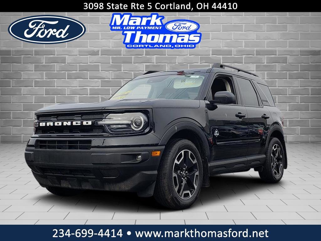 Mark Thomas Ford is proud to offer this handsome 2022 Ford Bronco Sport in Shadow Black. This 2022 Ford Bronco Sport has passed our comprehensive inspection and comes with the following features; Class II Trailer Tow Package w/Trailer Sway Control, Equipment Group 300A, Tech Package (HD Radio, Universal Garage Door Opener (UGDO), and Wireless Charging Pad), 3.80 Axle Ratio, 4-Wheel Disc Brakes, 4G LTE Wi-Fi Hotspot Credit, 6 Speakers, ABS brakes, Air Conditioning, Alloy wheels, AM/FM radio: SiriusXM, AM/FM Stereo, Auto High-beam Headlights, Auto-dimming Rear-View mirror, Automatic temperature control, Brake assist, Cargo Management System, Cargo Mat, Compass, Delay-off headlights, Driver door bin, Driver vanity mirror, Dual front impact airbags, Dual front side impact airbags, Electronic Stability Control, Emergency communication system: SYNC 3 911 Assist, Four wheel independent suspension, Front & Rear Floor Liners w/Carpet Mats, Front & Rear Splash Guards, Front anti-roll bar, Front Bucket Seats, Front Center Armrest, Front dual zone A/C, Front fog lights, Front reading lights, Fully automatic headlights, Heated door mirrors, Heated front seats, Heated steering wheel, Illuminated entry, Knee airbag, Leather Trimmed Heated Sport Contour Bucket Seats, Low tire pressure warning, Occupant sensing airbag, Outside temperature display, Overhead airbag, Overhead console, Panic alarm, Passenger door bin, Passenger vanity mirror, Power door mirrors, Power driver seat, Power passenger seat, Power steering, Power windows, Radio data system, Rain sensing wipers, Rear anti-roll bar, Rear Parking Sensors, Rear reading lights, Rear seat center armrest, Rear window defroster, Rear window wiper, Remote keyless entry, Roof rack: rails only, Security system, SiriusXM Radio, Speed control, Speed-sensing steering, Speed-Sensitive Wipers, Split folding rear seat, Steering wheel mounted audio controls, SYNC 3 Communications & Entertainment System, SYNC 3/Apple CarPlay/Android Auto, Tachometer, Telescoping steering wheel, Tilt steering wheel, Traction control, Trip computer, Variably intermittent wipers, and Wheels: 18" Ebony Black-Painted Aluminum.