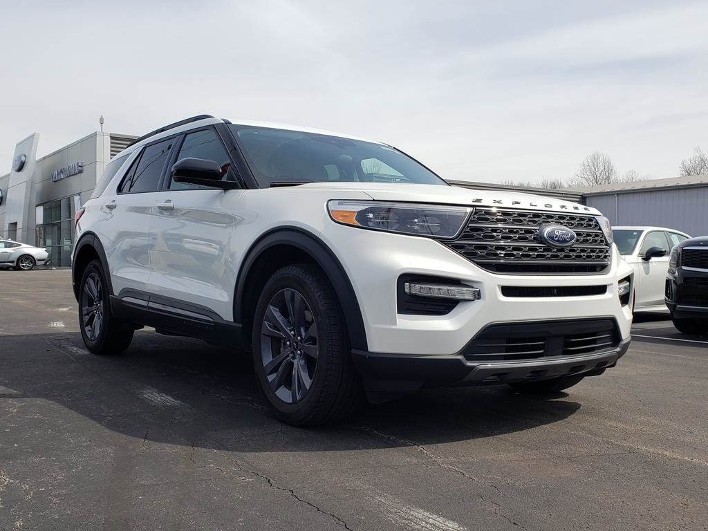 Mark Thomas Ford is proud to offer this handsome-looking 2023 Ford Explorer in White Metallic. This 2023 Ford Explorer has passed our comprehensive inspection and comes with the following features; Equipment Group 202A (Acoustic-Laminated Front Side Windows, Heated ActiveX Captain's Chairs, Heated Steering Wheel, LED Fog Lamps, Remote Start System, and SecuriCode Keyless Entry Keypad), XLT Sport Appearance Package (Dual Chrome Exhaust Tips and Wheels: 20" 10-Spoke Carbonized Gray-Painted), 4WD, 3.58 Non-Limited-Slip Rear Axle Ratio, 3rd row seats: bench, 4-Wheel Disc Brakes, 4G LTE Wi-Fi Hotspot Credit, 6 Speakers, ABS brakes, Air Conditioning, Alloy wheels, AM/FM radio: SiriusXM, AM/FM Stereo, Auto High-beam Headlights, Automatic temperature control, Brake assist, Bumpers: body-color, Compass, Delay-off headlights, Driver door bin, Driver vanity mirror, Dual front impact airbags, Dual front side impact airbags, Electronic Stability Control, Emergency communication system: SYNC 3 911 Assist, Exterior Parking Camera Rear, FordPass Connect, Four wheel independent suspension, Front & Second Row Floor Liners (16B), Front anti-roll bar, Front Bucket Seats, Front Center Armrest, Front dual zone A/C, Front reading lights, Fully automatic headlights, Heated door mirrors, Heated front seats, Heated Unique Cloth Captain's Chairs, Illuminated entry, Knee airbag, Leather steering wheel, Low tire pressure warning, Occupant sensing airbag, Outside temperature display, Overhead airbag, Overhead console, Panic alarm, Passenger door bin, Passenger vanity mirror, Power door mirrors, Power driver seat, Power Liftgate, Power passenger seat, Power steering, Power windows, Rear air conditioning, Rear anti-roll bar, Rear reading lights, Rear window defroster, Rear window wiper, Remote keyless entry, Roof rack: rails only, Security system, Speed control, Speed-sensing steering, Speed-Sensitive Wipers, Split folding rear seat, Spoiler, Steering wheel mounted audio controls, SYNC 3 Communications & Entertainment System, SYNC 3/Apple CarPlay/Android Auto, Tachometer, Telescoping steering wheel, Tilt steering wheel, Traction control, Trip computer, Variably intermittent wipers, and Wheels: 18" 5-Spoke Silver-Painted Aluminum.