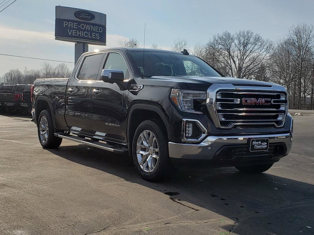 Mark Thomas Ford is proud to offer this attractive-looking 2019 GMC Sierra 1500 in Onyx Black. This 2019 GMC Sierra 1500 has passed our comprehensive inspection and comes with the following features; Driver Alert Package I (Lane Change Alert w/Side Blind Zone Alert, Perimeter Lighting, Rear Cross Traffic Alert, and Ultrasonic Front & Rear Park Assist), Driver Alert Package II (Following Distance Indicator, Forward Collision Alert, Front Pedestrian Braking, IntelliBeam Automatic High Beam On/Off, Lane Keep Assist w/Lane Departure Warning, Low Speed Forward Automatic Braking, and Safety Alert Seat), Preferred Equipment Group 4SA (12-Volt Rear Auxiliary Power Outlet, 120-Volt Bed Mounted Power Outlet, 120-Volt Instrument Panel Power Outlet, 170 Amp Alternator, Auxiliary External Transmission Oil Cooler, Chrome Grille, Color-Keyed Carpeting Floor Covering, Compass, Deep-Tinted Glass, Electric Rear-Window Defogger, Electrical Lock Control Steering Column, Front Frame-Mounted Black Recovery Hooks, GMC 4G LTE, GMC Connected Access, HD Radio, Heated Driver & Front Passenger Seating, Heavy-Duty Rear Locking Differential, Hitch Guidance, Hitch Guidance w/Hitch View, In-Vehicle Trailering App, Integrated Trailer Brake Controller, Keyless Open & Start, LED Cargo Area Lighting, Manual Tilt-Wheel & Telescoping Steering Column, OnStar & GMC Connected Services Capable, Power Door Locks, Power Front Passenger Windows w/Express Up/Down, Power Front Windows w/Driver Express Up/Down, Power Rear Windows w/Express Down, Rear Dual USB Charging-Only Ports, Rear Wheelhouse Liners, Remote Vehicle Starter System, Steering Wheel Audio Controls, and Theft Deterrent System (Unauthorized Entry)), SLT Convenience Package (2 USB Ports, 2 USB Ports (1st Row), Floor Mounted Console, Front Bucket Seats, Heated 2nd Row Outboard Seats, Power Sliding Rear Window w/Rear Defogger, Universal Home Remote, and Ventilated Driver & Front Passenger Seats), SLT Preferred Package (Premium Bose 7-Speaker Sound System, Radio: Premium GMC Infotainment Sys w/Navigation, SiriusXM Radio, and Wireless Charging), SLT Premium Plus Package (Chrome Assist Steps, Spray-On Pickup Bed Liner w/GMC Logo, and Trailer Tire Pressure Monitor System), Trailering Package, 8-Speed Automatic, 4WD, Jet Black Leather, 10-Way Power Driver Seat Adjuster w/Lumbar, 10-Way Power Passenger Seat Adjuster w/Lumbar, 20" x 9" Polished Aluminum Wheels, 3.23 Rear Axle Ratio, 4-Wheel Disc Brakes, 6 Speakers, 6-Speaker Audio System Feature, ABS brakes, Air Conditioning, Alloy wheels, AM/FM radio: SiriusXM, Apple CarPlay/Android Auto, Auto-dimming door mirrors, Auto-dimming Rear-View mirror, Automatic temperature control, Brake assist, Bumpers: chrome, Delay-off headlights, Driver door bin, Driver Memory, Driver vanity mirror, Dual front impact airbags, Dual front side impact airbags, Electronic Stability Control, Front 40/20/40 Split-Bench Seat, Front anti-roll bar, Front Center Armrest w/Storage, Front dual zone A/C, Front fog lights, Front License Plate Kit, Front reading lights, Front wheel independent suspension, Fully automatic headlights, Heated door mirrors, Heated front seats, Heated steering wheel, Heavy Duty Suspension, Illuminated entry, Low tire pressure warning, Memory seat, Occupant sensing airbag, Outside temperature display, Overhead airbag, Overhead console, Panic alarm, Passenger door bin, Passenger vanity mirror, Perforated Leather-Appointed Seat Trim, Power door mirrors, Power driver seat, Power passenger seat, Power steering, Power windows, Premium audio system: GMC Infotainment System, Radio data system, Radio: Premium GMC Infotainment Sys w/Multi-Touch, Rear reading lights, Rear seat center armrest, Rear step bumper, Rear window defroster, Remote keyless entry, Security system, Speed control, Speed-sensing steering, Split folding rear seat, Steering wheel mou