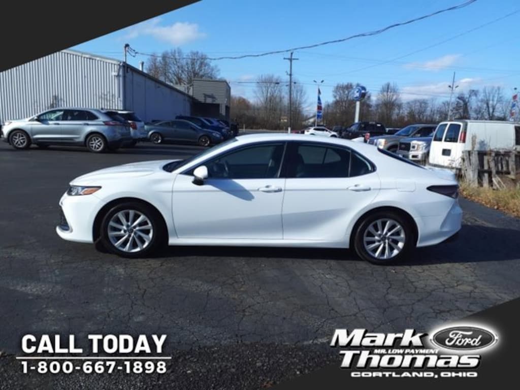 Mark Thomas Ford is proud to offer this good-looking 2022 Toyota Camry in White. This 2022 Toyota Camry has passed our comprehensive inspection and comes with the following features; Black Cloth, 4-Wheel Disc Brakes, 6 Speakers, 7.5J x 17" Alloy Wheels, ABS brakes, Air Conditioning, Alloy wheels, AM/FM radio: SiriusXM, Apple CarPlay/Android Auto, Auto High-beam Headlights, Automatic temperature control, Brake assist, Bumpers: body-color, Delay-off headlights, Driver door bin, Driver vanity mirror, Dual front impact airbags, Dual front side impact airbags, Electronic Stability Control, Emergency communication system: Safety Connect with 1-year trial, Exterior Parking Camera Rear, Fabric Seat Trim, Four wheel independent suspension, Front anti-roll bar, Front Bucket Seats, Front Center Armrest, Front dual zone A/C, Front reading lights, Fully automatic headlights, Illuminated entry, Knee airbag, Low tire pressure warning, Occupant sensing airbag, Outside temperature display, Overhead airbag, Overhead console, Panic alarm, Passenger door bin, Passenger vanity mirror, Power door mirrors, Power driver seat, Power steering, Power windows, Radio data system, Radio: AM/FM Audio System, Rear anti-roll bar, Rear seat center armrest, Rear side impact airbag, Rear window defroster, Remote keyless entry, Security system, Speed control, Speed-sensing steering, Split folding rear seat, Steering wheel mounted audio controls, Tachometer, Telescoping steering wheel, Tilt steering wheel, Traction control, Trip computer, and Variably intermittent wipers.